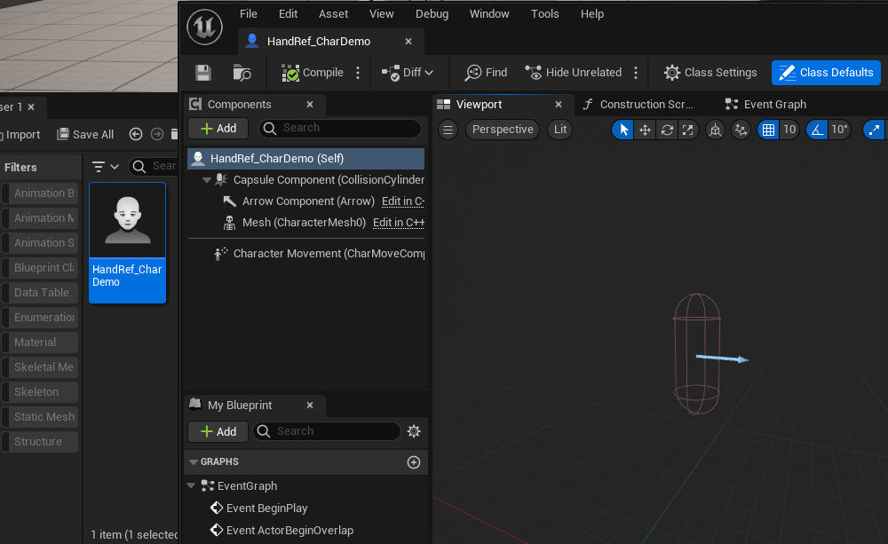 - Now you are finished setting up the character. Set this Character Blueprint you have created as Default Pawn Class much like in the Quick and Easy Method, place the demo Weapon Blueprint on the level scene, play and test.