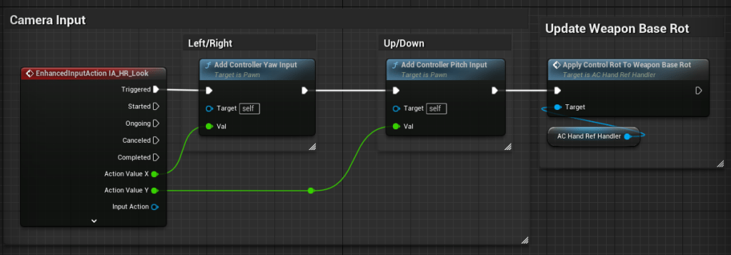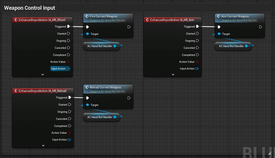 - Add Weapon Controls, create a node group using the Hand Ref Handler in graphs as illustrated below: