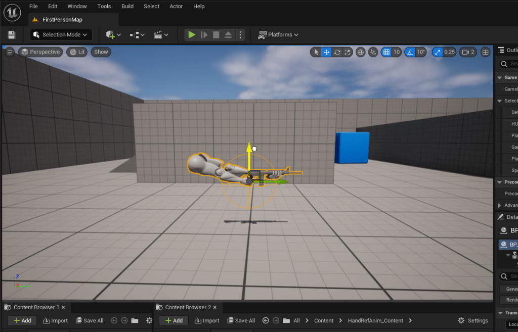 - Find BP_Weapon_Demo in the content pack folder, drag it to Level Scene to place it in. Finally, adjust the weapon in scene so it’s easier to pick up.
