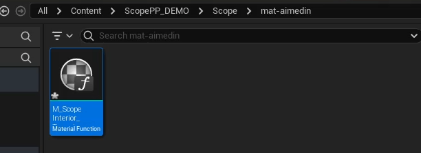 - Create a new material function under ScopePP_DEMO > Scope > mat-aimedin, name it M_ScopeInterior_TranslucencyMasker