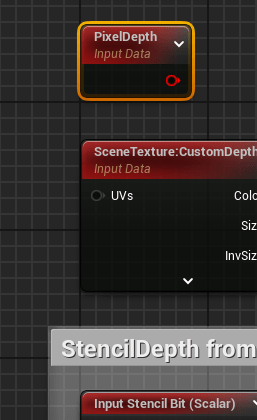 - Create a SceneTexture node set the SceneTextureId to CustomDepth