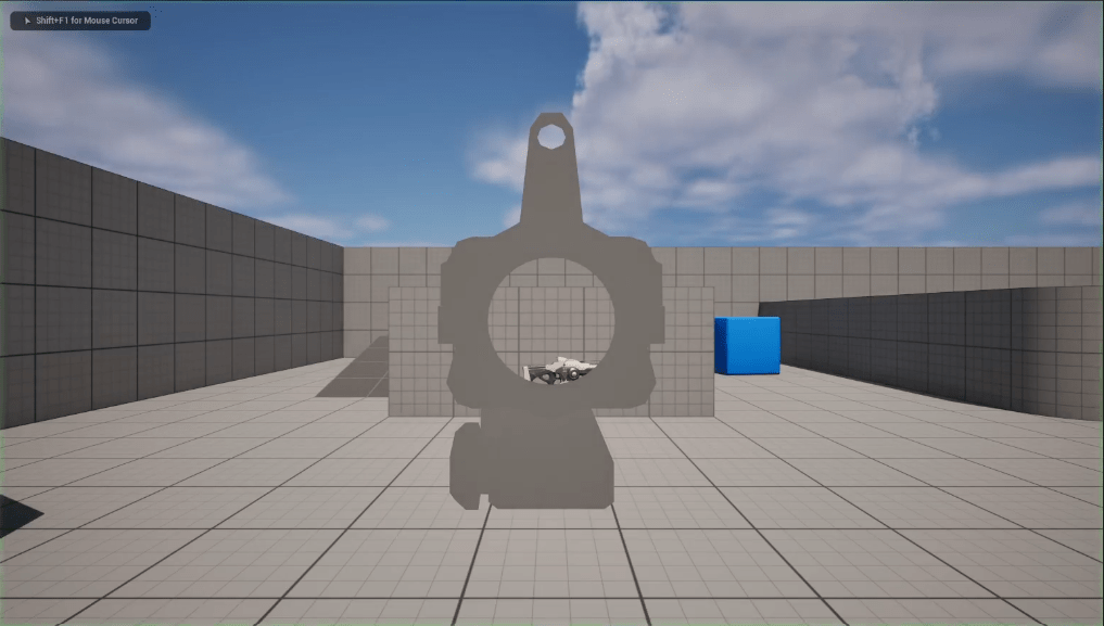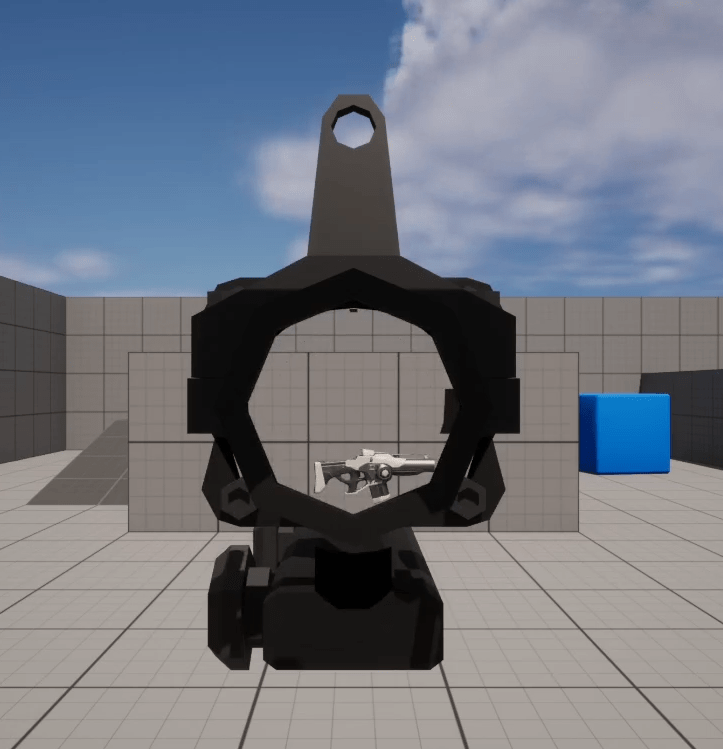 - Set the ScopeMesh Location, Rotation and Scale so it directly sits on top of the camera which gives a player a clean Line of sight trough.
