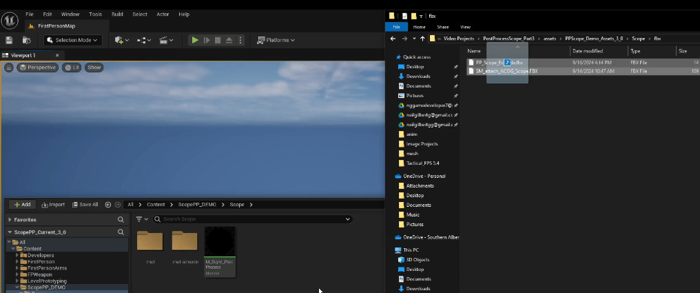 - Under ScopePP_DEMO > Scope drag the starting meshes from the zip file under Scope > fbx.